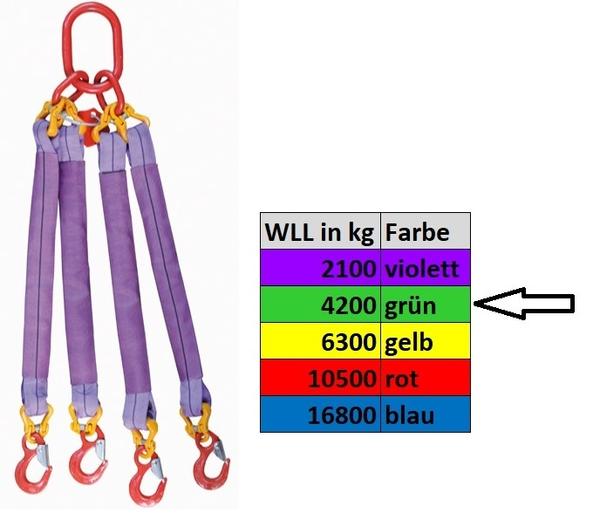 Das 4-strängige Rundschlingen-Gehänge stellt sicher, dass die Traglast weder längs noch quer kippen kann.